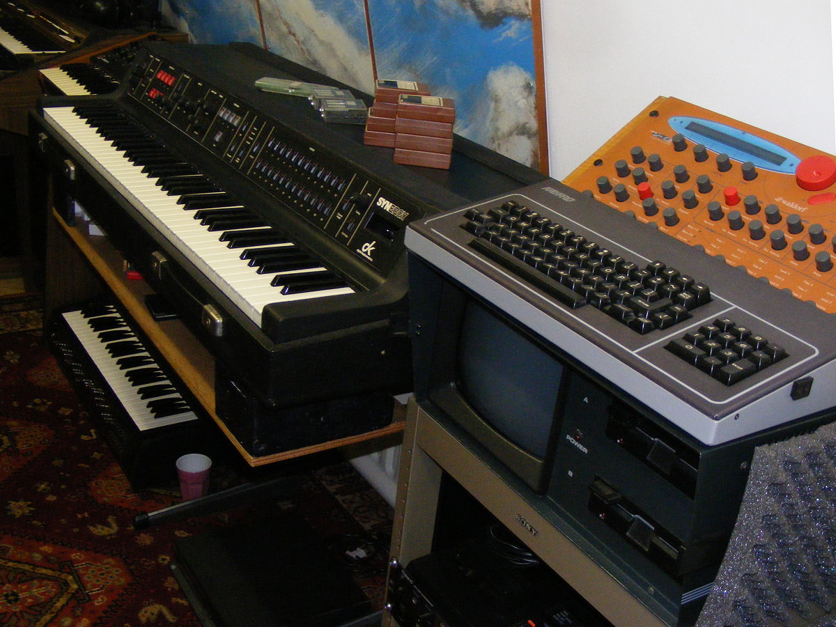 The Crumar / DKI GDS was one of the grand early computer synthesizer systems. Only few where built but luckily there is an alternative. The Synergy originally was a preset version but this set has the same sonic capabilities as the GDS. Even the presets sound fantastic and I am dying to start programming it's additive and AM engine. It has it's quirks though. The computer is hilarious anyway! It's an early 80ties portable with a tiny green screen.