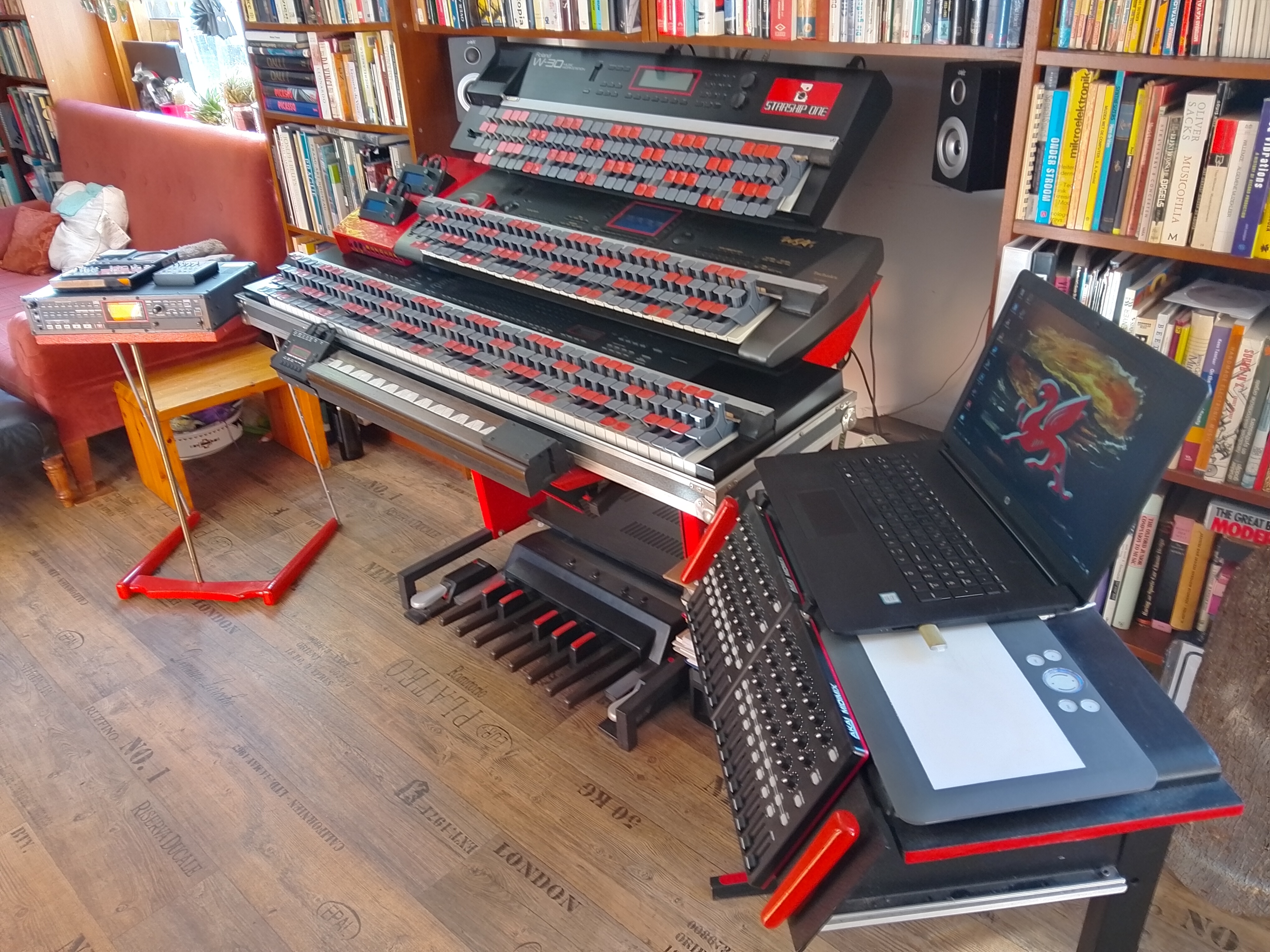 The latest news is that it now sports 3 keyboards, all carrying their own Janko adapters. So this ultimate mad professors infernal music machine has now reached almost caricaturist proportions but, as will be explained below, common sense is still hiding under the surface.