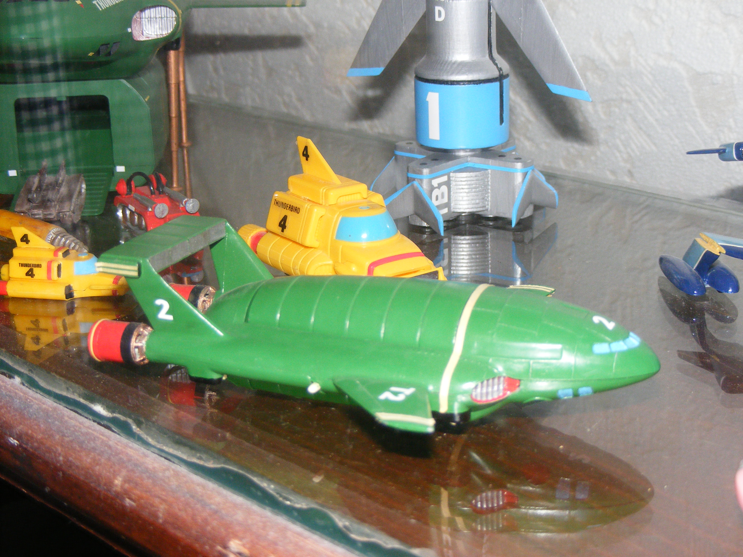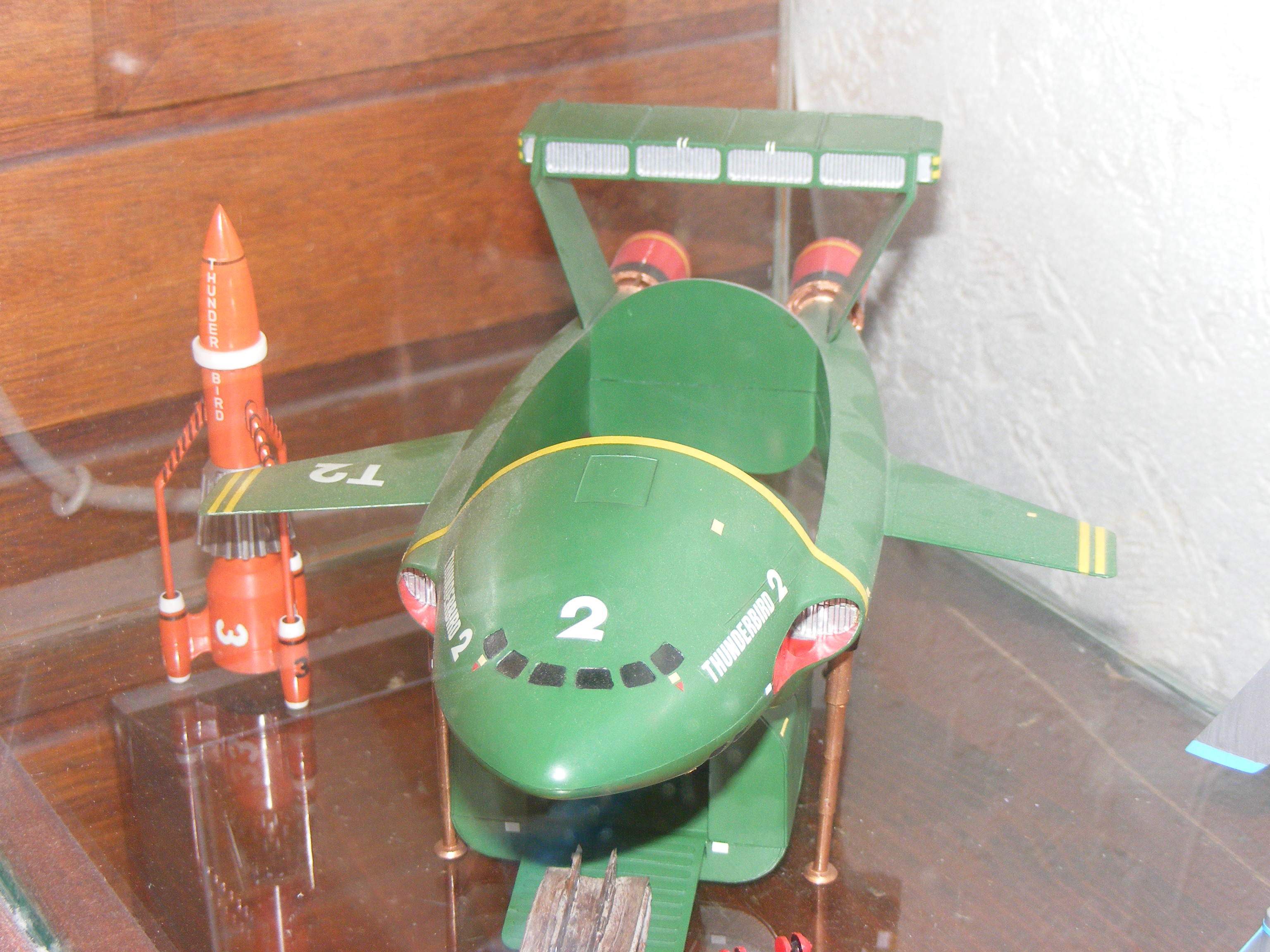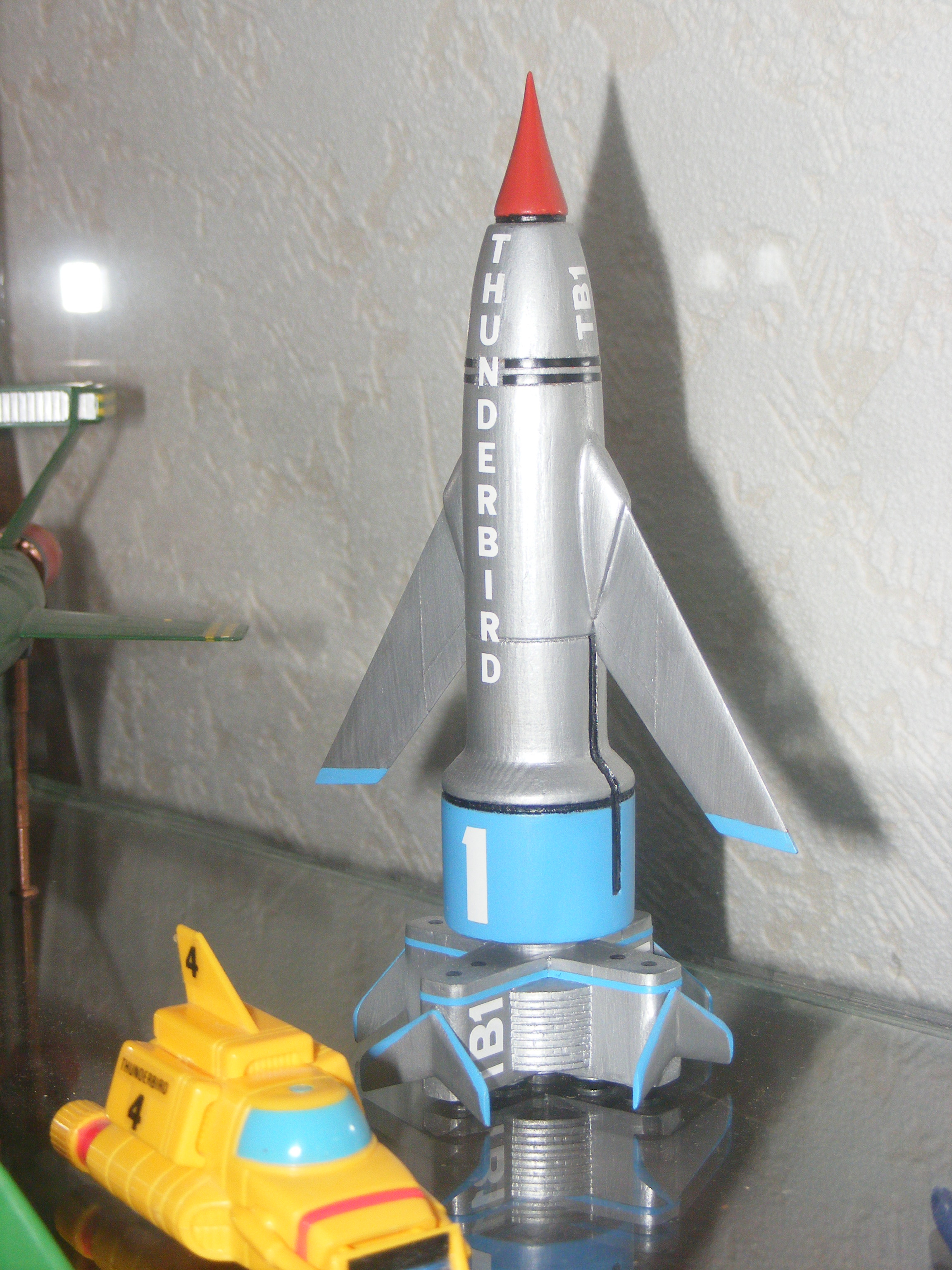 I am quite proud of this one. It's a completely scratchbuilt Thunderbird 1. I used photographs of the original instructions that the production company handed out as examples to toy makers to base the merchandise on. For that reason the proportions of this model are near perfect.